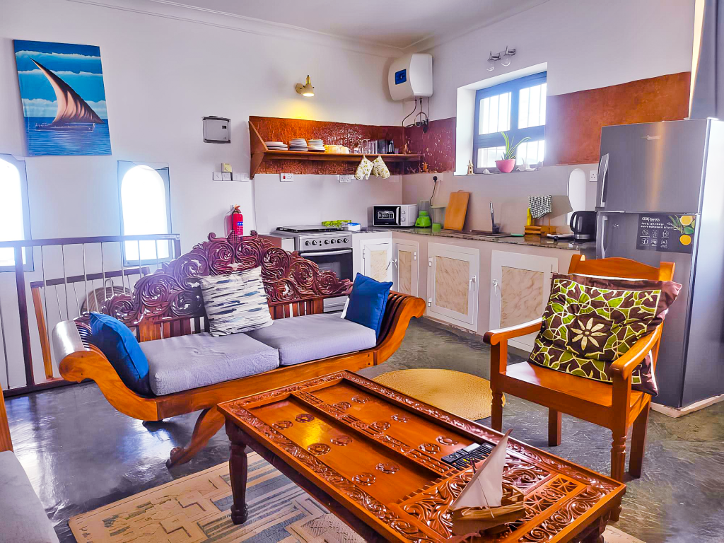 Each of the three bedrooms of Seafarers Loft has a private ensuite bathroom and air-condition. In addition to a stylish living room, this serviced and family and pet-friendly apartment suitable for groups, has a private kitchen equipped with modern appliances. Located 15 minutes’ walk to the beach, it is 15 minutes drive to Zanzibar's international airport.